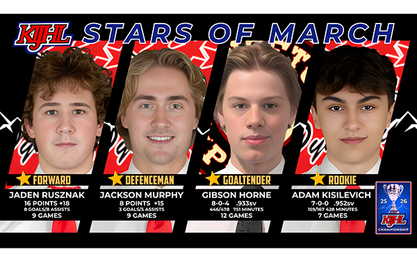 The Kootenay International Junior Hockey League (KIJHL) is pleased to announce its Stars of the Monthfor March. Forward – Jaden Rusznak – Kimberley Dynamiters Rusznak…