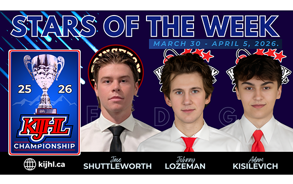 The Kootenay International Junior Hockey League (KIJHL) is pleased to announce its Stars of the Week for the period ending April 5. Defence – Johnny…