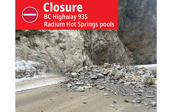 Highway 93 in Kootenay National Park, in the canyon leading to Radium Hot Springs, was closed Feb. 18 due to a rockslide. DriveBC reports today…