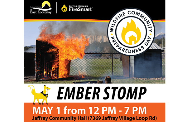 The East Kootenay FireSmart Program will be hosting the third annual Ember Stomp Wildfire Community Preparedness Day event on May 1 in Jaffray. “All residents…
