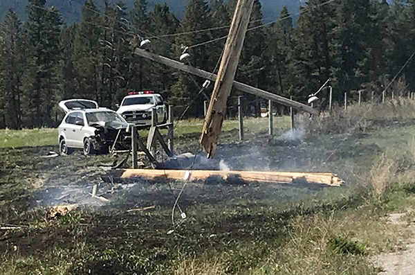 “The first fire was sparked after a vehicle being driven by a lone occupant left the highway, striking a power pole,” explained Columbia Valley Rural Fire & Rescue Chief Jim Miller. “Once the lines went down, there was power surge along the line about 1.5km north of the original scene, which resulted in a second grass fire.”