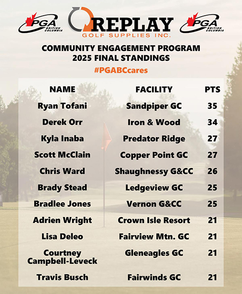 Home » Local golf pro third in B.C. for Community Engagement » Community Engagement Program Standings Final 2025