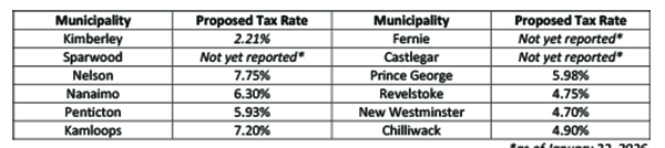 A look at some other B.C. municipalities that have publicly reported their proposed tax levy for 2026.