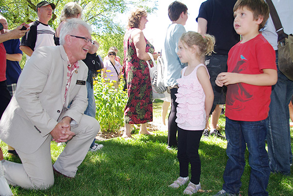 Lead image: Wayne Stetski, left, greets Ella-Grace and Xavier Trudeau, who arrived in Cranbrook with father Justin and mother Sophie Grégoire on July 21, 2013. Then City of Cranbrook Mayor, Stetski greeted the would-be Prime Minister and family during a visit to the city. Ian Cobb/e-KNOW