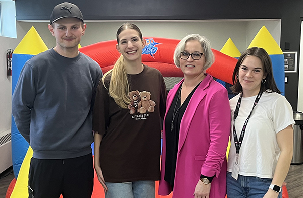 Lead image: Councillor Lynnette Wray (second from right) with participating College of the Rockies students Andreas (left), Olivia (second from left), and Nadine (right) during the Natanik: Day of Sunshine event at Key City Theatre on February 13. City of Cranbrook photo