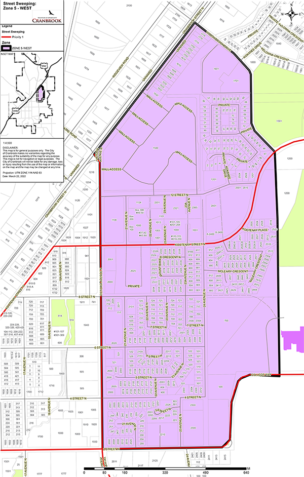 Starting on Tuesday, April 21, crews with the City of Cranbrook’s Public Works road team will be moving their spring street sweeping operations to Zone 5 East and West for the next few weeks to remove gravel and other debris that accumulated over the winter months.