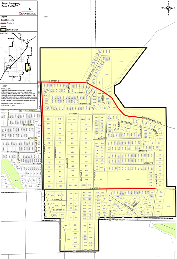 Starting on Monday, April 20, crews with the City of Cranbrook Public Works road team will be moving spring street sweeping operations to Zone 3 East and West for the next few weeks to remove gravel and other debris that accumulated over the winter months.