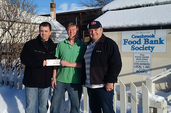 Above photo: L to R: Jeff Bromley – USW Local 1-405 Financial Secretary, Gerry Oviatt – Cranbrook Food Bank Manager, Doug Wood – USW Local 1-405 1st Vice-President.