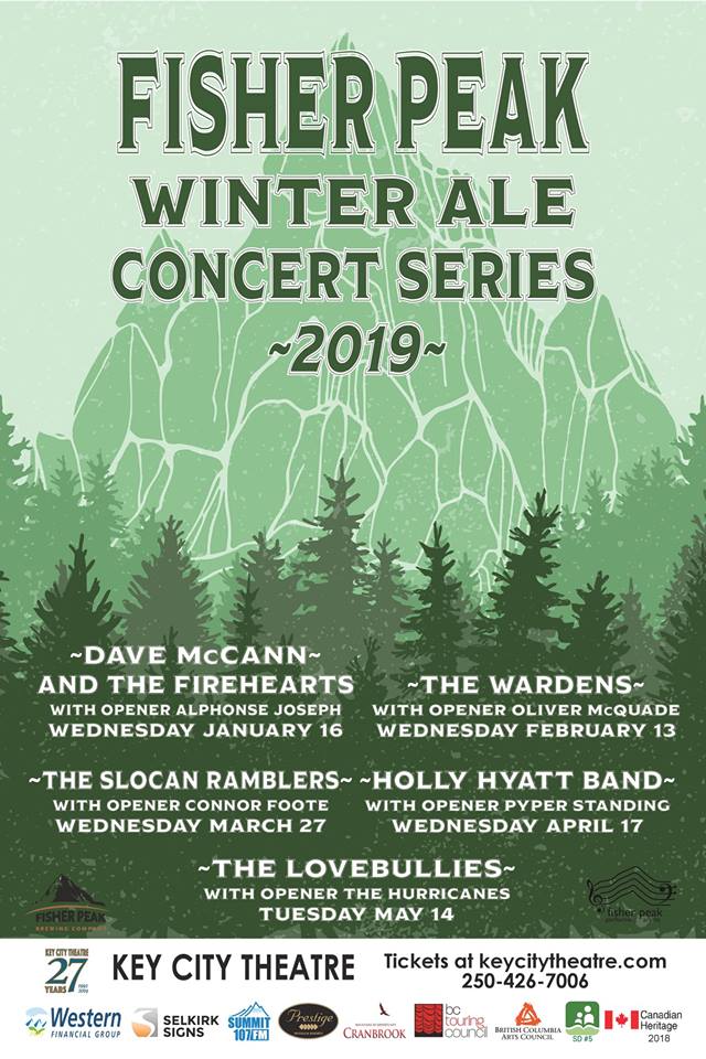 The 2019 Winter Ale Concert Series is a collaborative presentation by Fisher Peak Performing Arts Society and Key City Theatre, running January to May, will feature local talent opening for visiting guests acts.