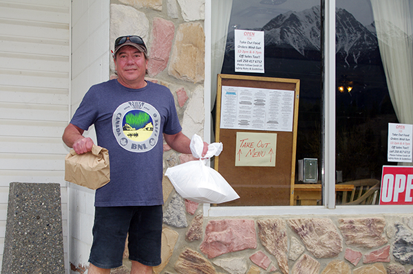 Lead image: Bull River Inn owner Ed Abbey has continued to provide awesome pub grub, for pick-up, during the COVID-19 pandemic. He is open to meet food orders and off sales between noon and 2 p.m. and 3 to 8 p.m. Wednesday through Sunday. Ian Cobb/e-KNOW photo