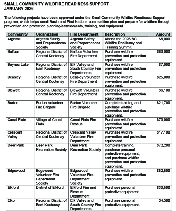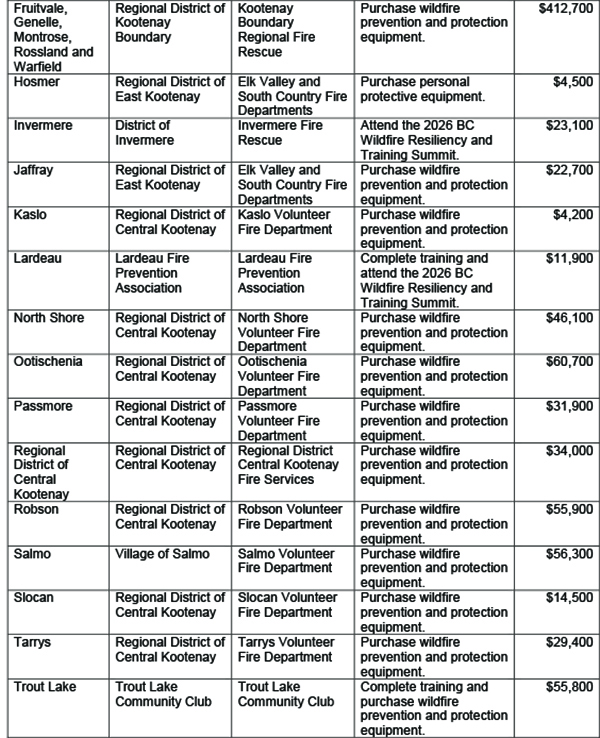 “The changing climate is increasing the likelihood of wildfires, and these projects show how seriously Basin communities are taking preparedness,” said Kris Belanger, Senior Manager, Delivery of Benefits, Columbia Basin Trust. “By strengthening local fire departments with better training and equipment, they’re helping make the region more resilient to climate change.”