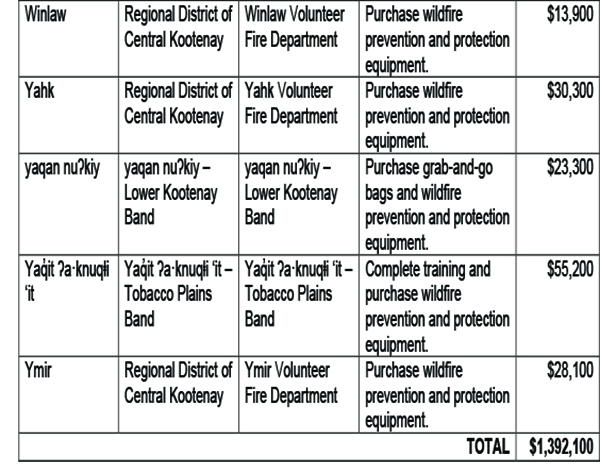 “The priorities of the fire department and the volunteer firefighters are to reduce the risks to life, property and environment,” said Stephanie Whitney, Chief, Winlaw Volunteer Fire Department. “Bolstering our wildfire-related equipment inventory allows the department to be more effective in achieving these priorities.”