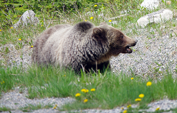 Suggestion number one was that we’d drive the grizzly off. We all started across the creek toward the bear, hooting and yelling. The grizzly responded by bluff charging and driving us back across the creek, our tail between our legs. Round one to the bear.
