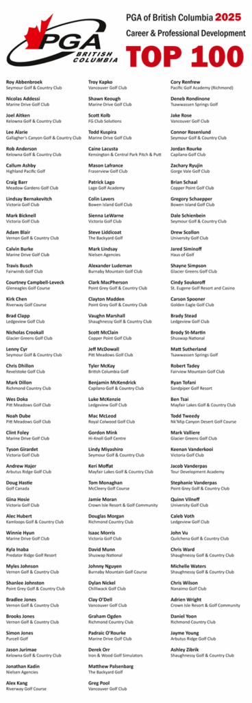 Four local golf pros among top 100 for development