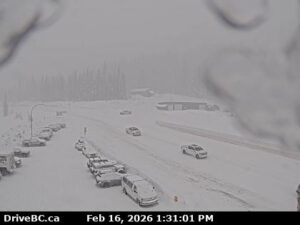 Environment Canada has also issued a snowfall warning for Highway 3 – Paulson Summit to Kootenay Pass – with total amounts of 15 to 25 cm expected through to Tuesday morning, with the highest volume of snow expected in Kootenay Pass.