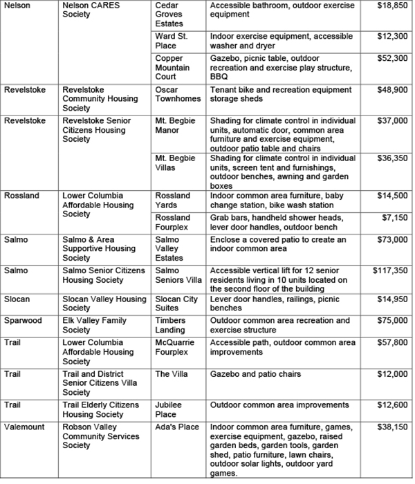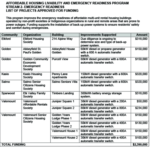 “When we’re at home, we all want to feel comfortable and secure,” said Ulli Mueller, Senior Manager, Delivery of Benefits, Columbia Basin Trust. “These projects will help people feel supported and connected in their homes and communities, while back-up power systems will bring peace of mind by keeping essential services running during outages.”