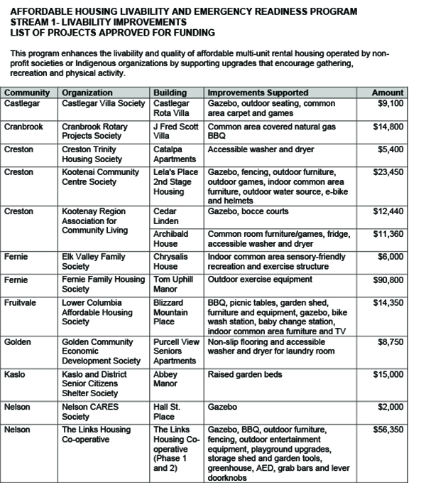 Affordable rental housing around the Basin will soon benefit from upgrades that enhance livability and emergency preparedness. Partnering with non-profit housing societies and other organizations, Columbia Basin Trust is investing nearly $3.3 million to make multi-unit rental homes more welcoming, accessible, safe and resilient—benefitting seniors, families and individuals in 17 communities.