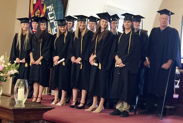 Eleven grads plus a first-ever honorary diploma were celebrated. This is the 16th year anniversary of the school. The ceremonies are usually held on the courthouse lawn but rain moved them inside the United Church that turned out to be a great venue.