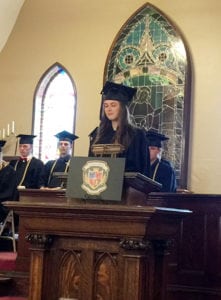 Eleven grads plus a first-ever honorary diploma were celebrated. This is the 16th year anniversary of the school. The ceremonies are usually held on the courthouse lawn but rain moved them inside the United Church that turned out to be a great venue.