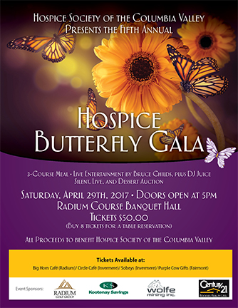 The Hospice Society of the Columbia Valley is thrilled to host our fifth annual Butterfly Gala at Radium Golf Course Banquet Hall.
