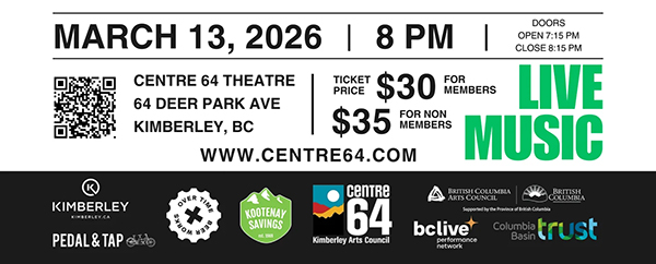 This special Kimberley performance offers fans a rare chance to experience one of Canada’s most respected independent artists in the warm, close-up setting of Centre 64 Theatre.