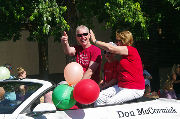 Lead image: Don and Bev McCormick ride in the 2018 JulyFest Homecoming Parade. e-KNOW