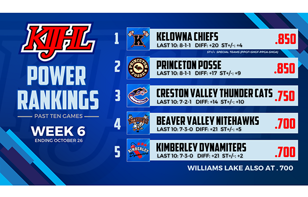 The Kootenay International Junior Hockey League (KIJHL) is pleased to announce its Power Rankings for Week 6.