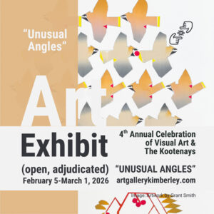 Open to artists from the Kootenays and beyond, “Unusual Angles” encourages creative exploration and originality across all visual art disciplines. The exhibit offers artists the opportunity to show their artworks in a professional gallery setting, connect with new audiences, and participate in an adjudicated exhibit with awards and public engagement.
