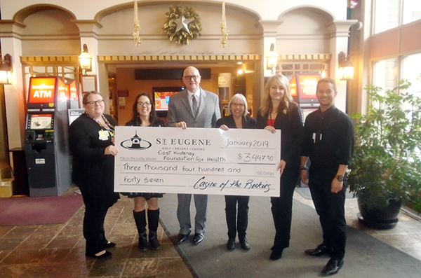 Casino of the Rockies presented a cheque to the East Kootenay Foundation for Health for an amazing $3447.90! These funds will go towards the purchase of the MALDI TOF for the East Kootenay Regional Lab and will benefit the entire East Kootenay Interior Health Region. Pictured are: Melissa Grenier, Brenna Baker, Barry Zwueste, Sarah Cheveldave, Margarita Khoulind and Elinton Moura. Photo submitted